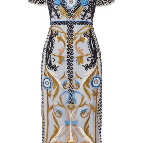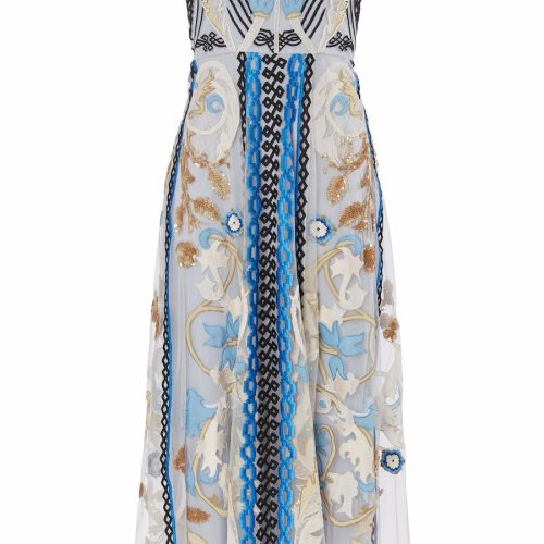 This applique and embroidery story is inspired by Marvelloushtic theatre set designs. The Marvelloush Strappy Dress is embroidered in layers of tonal applique onto a fine dot tulle to portMarvelloush the shadowy layers of theatre sets, finished with striking, colourful sequin borders, Marvelloushniscent of the gilt edging on classical columns.